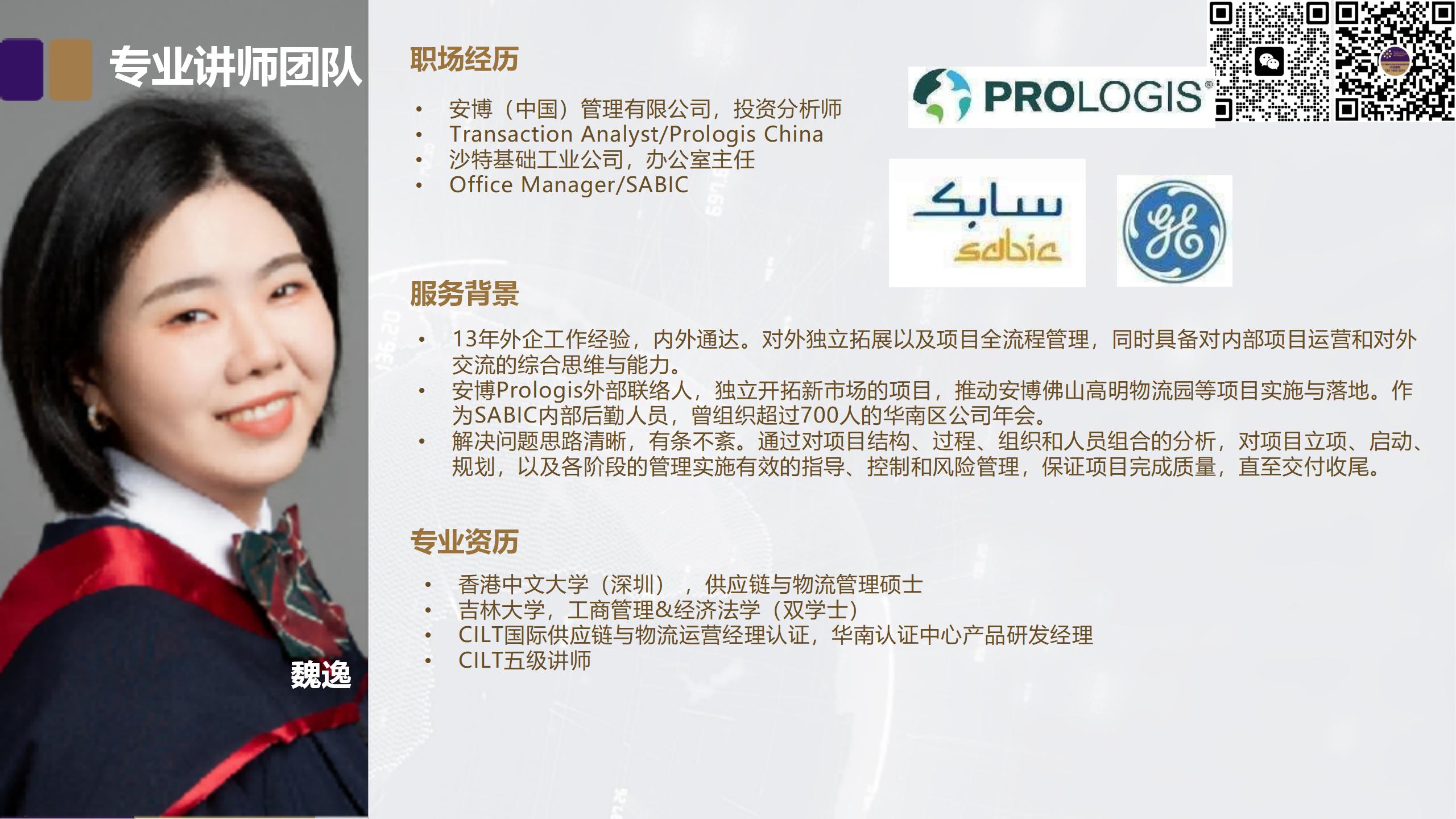 - 主张四:教学质量保障体系。中国区CILT讲师实行“授权制”,经CILT总部认证授权方可上岗教学。授权讲师全部经历过学习、考试后持有CILT国际证书,保证“让内行教内行”。讲师具备深厚的工作与学历背景,目前均由“香港中文大学(深圳)”供应链与物流管理硕士团队担任,兼具学术底蕴与行业积淀。